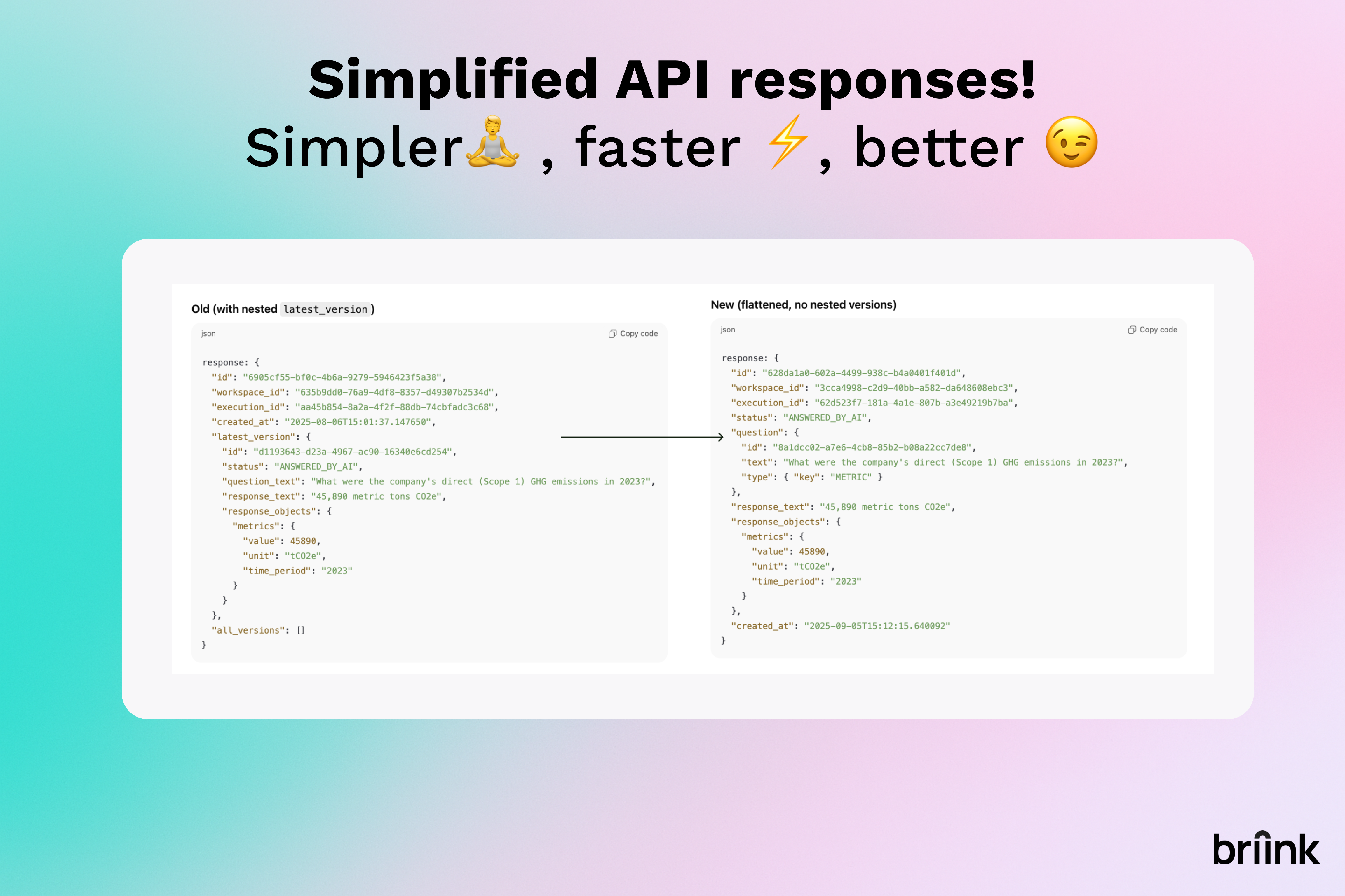 You told us and we listened! The new v1.1 of Briink's API is now live including fully removing ‘versioning’ from all our API response objects as well as a number of other improvements which make the API developer experience: